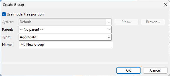 • Group – Select whether to assign the model object to a group. This can be an existing group or new group.
