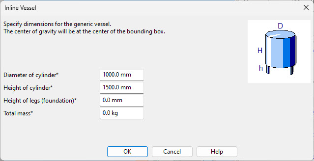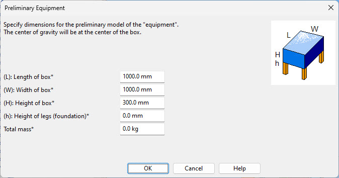 5. The Preliminary Equipment dialog opens. Enter the dimensions of the model, and then click OK.