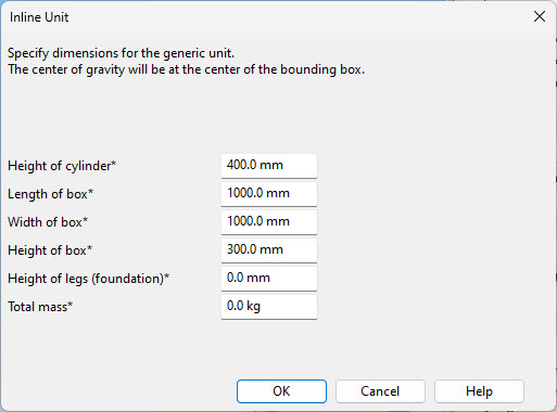 For information on how to edit the dimensions of inline equipment later, see Inline Component Parameters.