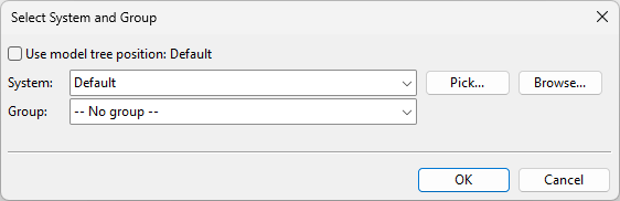 • System – Select a System for the model object. You can use the System that is currently selected in the model tree, select the System from the drop-down list, pick the System from another model object, or select the System from the object browser.