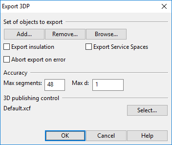5. In the 3D publishing control section, click Select to select the 3D publishing control to use. The publishing control can also contain tags that publish insulation attributes.