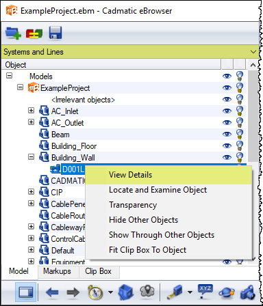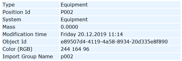 Object attributes the user sees in eBrowser when selecting View Details from the context menu of an individual object, or in some other CADMATIC application that retrieves attributes from an eBrowser model.