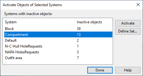 - Click Define Set to pick which of the inactive objects of the selected Systems to activate.