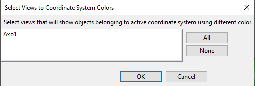 Local Coordinates > Color by local coordinates allows you to select which views use color to indicate the coordinate system of the model objects.