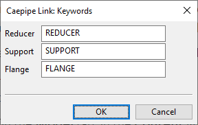 Corporate Keyword Definitions – Opens a dialog for defining keywords that allow the program to recognize reducers, supports, and flanges in the selected pipes. The fields use pattern matching by default—there is no need to use the asterisk character.