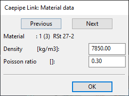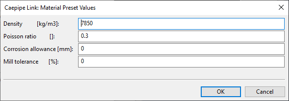 Material Preset Values – Opens a dialog for defining the default material properties of the pipes to be exported. These settings are used for all exported components, unless you select the option that allows the material properties to be defined per component type during the export.