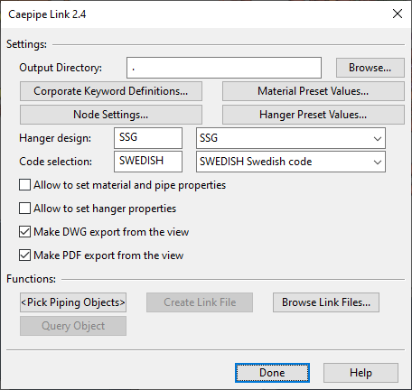In the Functions section, click Create Link File. The Caepipe Link dialog opens.