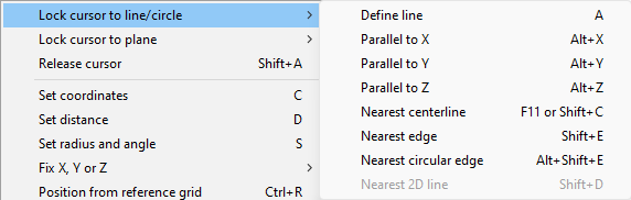 A result is a lock line which is defined with a point (through point) and direction vector. When the shortcut key A is pressed the current location of cursor is the through point. The direction vector can be set using several direction definitions.