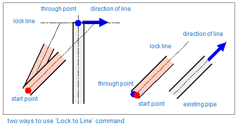 After lock line definition, the end point of pipe is coincident with the lock line. The cursor is locked to through point after navigation command, press 5 or 6 to release the cursor.