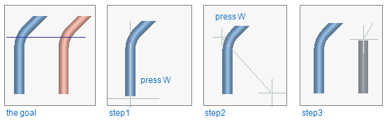 In this routing example the goal is to have a pipe with an elbow parallel to the existing (blue) pipe.