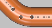 For example, in pipes the geometry point can be the endpoint of a pipe, one of the quadrant points in the circumference of the pipe, the intersection of the centerlines within an elbow between two straight pipes (as shown in the picture below), or the midpoint on the centerline of the pipe. In Component Modeller, only cylinders, cones, and eccentric cones have a centerline midpoint.