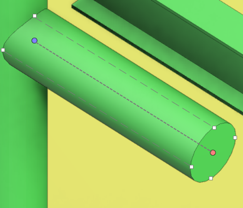 Normally the axis line is solid, but it becomes striped when it behind or inside a model object.
