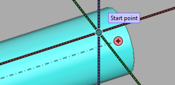 The cursor visualizes the quadrant points and the quadrant lines of a straight piping part.