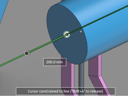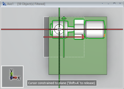 When the cursor is constrained to a line, only the coordinate axis line of that direction is visible to indicate that the cursor can only move in this direction. The line has the color of the relevant axis, or it is gray if the direction is not parallel to any main axis.