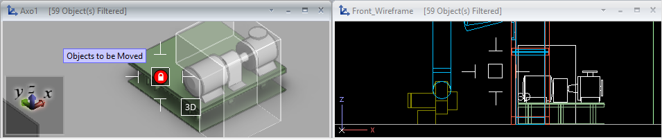- If 3D hit is on, the cursor displays the text "3D", and moving the cursor inside an object highlights the object.