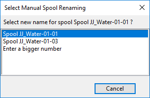 If the spool to rename is part of a numbered spool sequence, you are prompted either to select a suggested name from a list of candidate names or to enter the spool number to use.