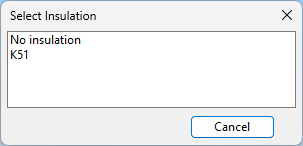 In the Select Insulation dialog, select the insulation specification to use. If insulation is optional, also the option "No insulation" is available.
