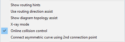 During pipe routing, you can enable or disable the Online collision control command from the context menu, as needed, to specify whether to visualize collisions between the pipe you are routing and other objects.