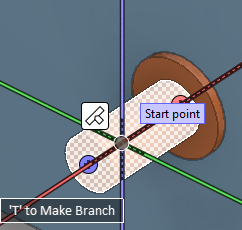 Moving the cursor near the centerline of a straight pipe displays a visual cue (branched pipe) and on-screen help text to indicate that pressing T will make a branch to the target pipe.