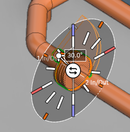 Move the cursor near one of the two orange points on the surface of the elbow, so that a direction arrow appears next to the point, and press Space or click to select the location.