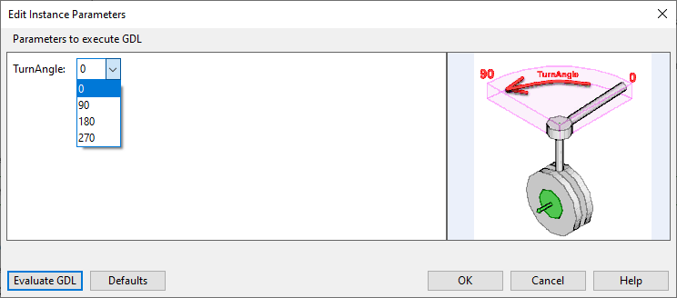 If the Edit Instance Parameters dialog opens, define the instance parameter values of the component. You can click Evaluate GDL to see a preview of the changes. Then click OK to continue.