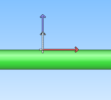 Typically, the component is inserted to a straight pipe, but you can also insert the instrument to an elbow. In this case, the command draws two additional points that mark the locations where the surface of the elbow intersects with the centerline of the straight pipe.