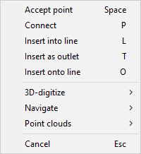 Accept point (Space) | Connect (P) | Insert into line (L) | Insert as outlet (T) | Insert onto line (O)