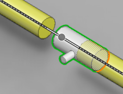 You can use the Insert onto line (O) command to insert, for example, a bushing sleeve or a pipe support that is connected to a pipe. Components that are inserted this way are deleted if the associated pipe is deleted.