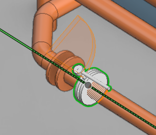 Unless you are inserting the valve to the end of a pipe, the cursor is now locked to move along the length of the pipe. Slide the component to the intended location and press Space or click to confirm the location.