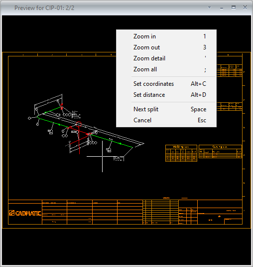 Preview type allows you to choose whether the preview window shows a shaded 3D view or an isometric drawing. If you have used splitting, you can click the preview window to review the results of the splitting. If preview type is set to isometric drawing, you can press Space in the preview window to move from one document page to another.