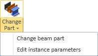 On the Structural tab, in the Beam group, the Change Part menu provides tools for changing the beam parts in the model and editing the instance parameters of beams.