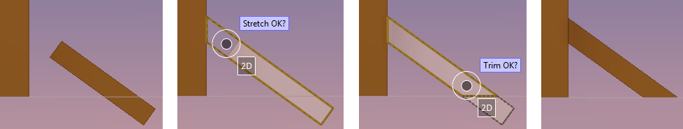 This example shows how a slanted beam that is partly inside the floor can be stretched to the vertical beam nearby and trimmed to the surface of the floor.