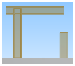 In this example, we have a horizontal beam which we want to connect to two vertical beams with miter joints.