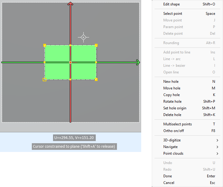 Define the shape of the hole by picking control points on the plate and using the commands in the context menu.