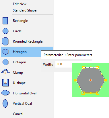 In the shape menu, click the name of the shape that you want to use. The Parameterize dialog opens.