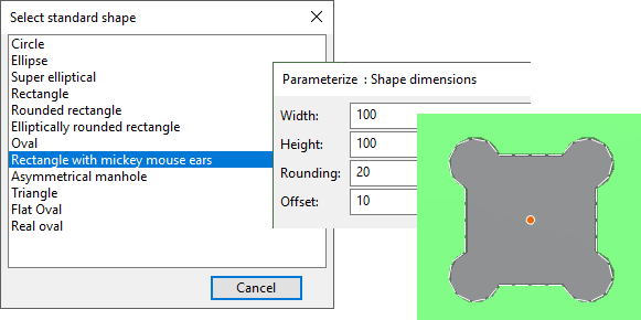 In the shape menu, click Standard Shape. The Select standard shape dialog opens.