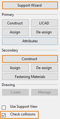 The program runs collision checks automatically when returning from the Support Wizard or the Construct command of a secondary support and the Check collisions option is selected.