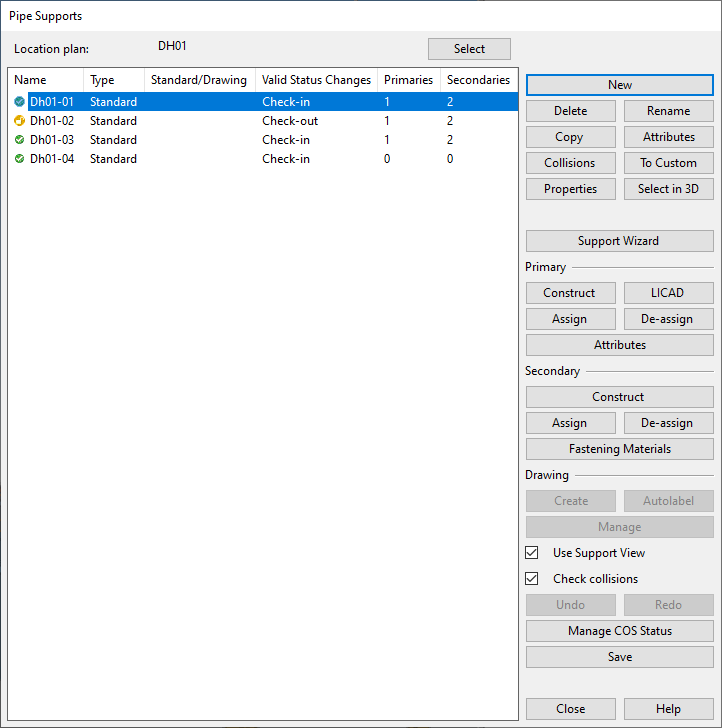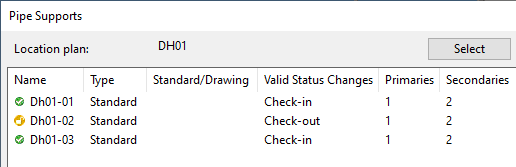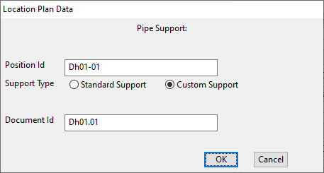 In the Support Designer: Location Plans dialog, select a location plan and click the pipe