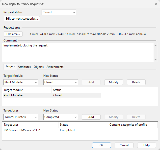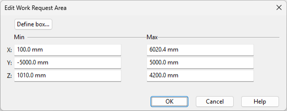 You can change the area of the work request by clicking Edit area and defining the new min–max limits in the Edit Work Request Area dialog.