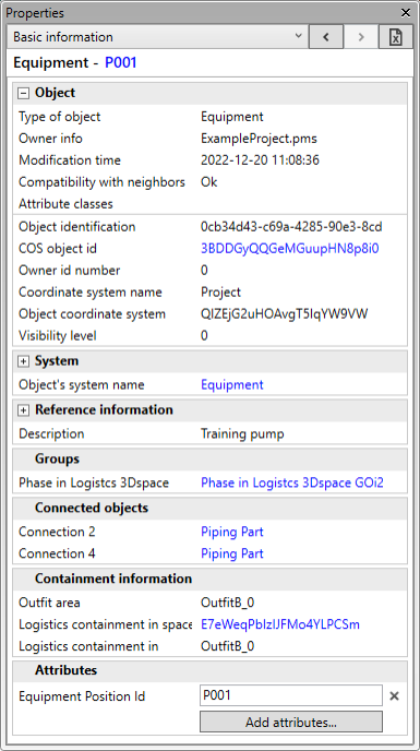 On the Basic information tab, you can add Plant Modeller shared attributes to the object by clicking Add attributes.