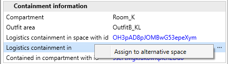 In the Containment information section of the Properties pane, you can see information relating to the logistics containment of the selected object.