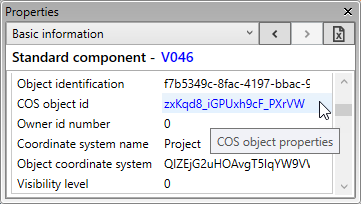 COS object id – Link opens the Object Properties dialog for the selected object.