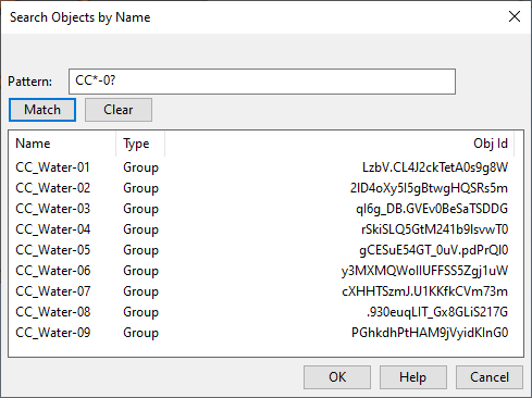 If there are too many results, click Clear to empty the object list and try some other pattern.