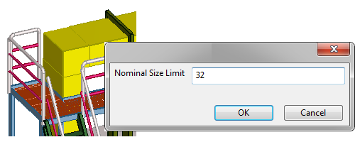 This selection method can be used to select pipes and standard components that have nominal size greater than or equal to a value that is prompted from the user. This is very useful method when using Set Operations to create a selection set.