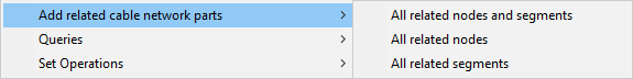 When several consecutive cable trays are already in the set, All related nodes and segments adds the nodes and the segments of those cable trays, as well as the segments between the cable trays, into the set.