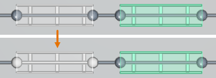 You can use the selection methods in the Related cable network parts menu to add cable network parts (segments and/or nodes) into a set that already contains their cable way host objects (cable trays, pipes, or penetrations). A segment that is located between two cable way host objects is selected if both host objects are already in the set. Also network parts that are currently hidden or inactive are selected.