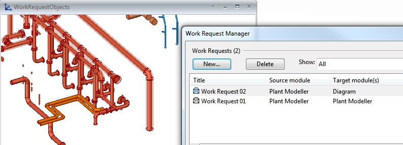 This selection method can be used to select objects that belong to the same spool as the object that you selected last. First pick one pipe part or a duct part that belongs to a spool, and then use the command Add Others in Spool.