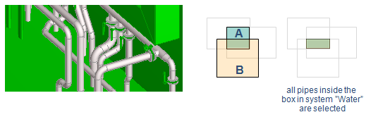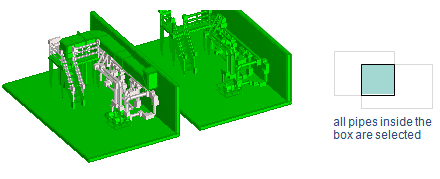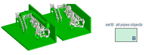 To accept the logical AND operation (to select objects which belong to both sets) press Enter. At this point all the pipe objects inside the defined area are selected and this set is the new set A if you continue with set operations.