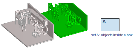Select objects using the selection tool Objects Inside a Box or Objects Intersecting a Box to define selection set A.