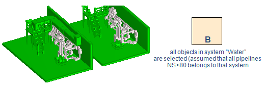 To limit the selection to objects in system "Water", select Set Operations > AND from menu to define new selection set B. Remember that current selection set consists of pipes in defined area, including railings which are in the System "Railings".